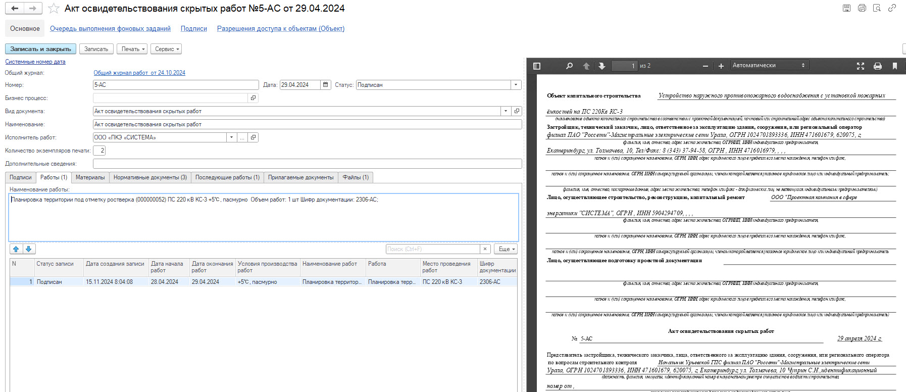 Входящие и исходящие письма также связываются с документацией дерева проектов. Система позволяет формировать PDF файл исходящего письма и выполнять его согласование.
