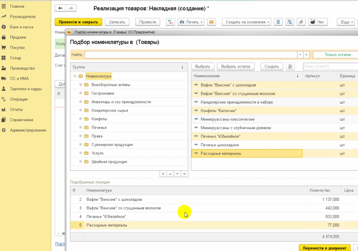 Быстрый подбор номенклатуры по остаткам в 1С:Бухгалтерии 8