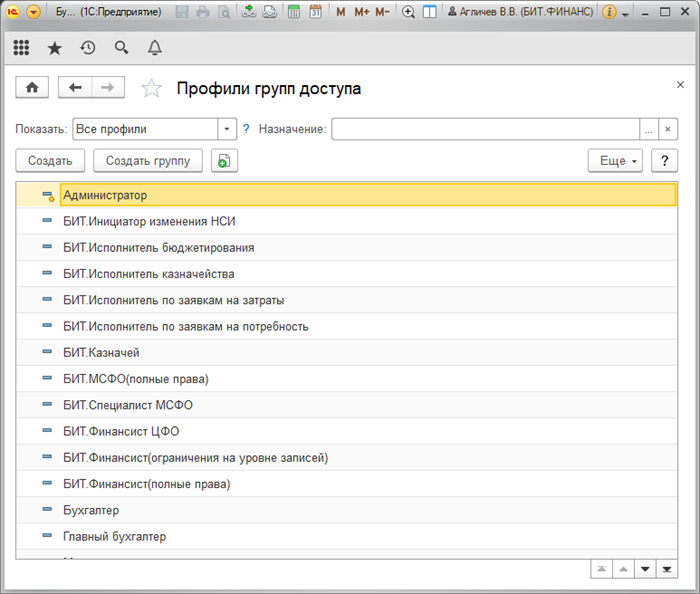 Профили групп доступа в БИТ.ФИНАНС