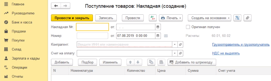 Рассмотрим, как сформировать в программе 1С Бухгалтерия 8.3 документ «поступление товара».