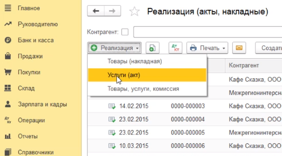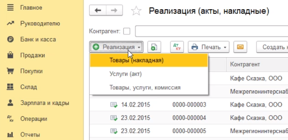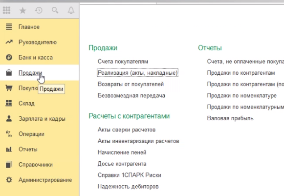 Для этого идем в раздел продажи, реализация (акты, накладные).