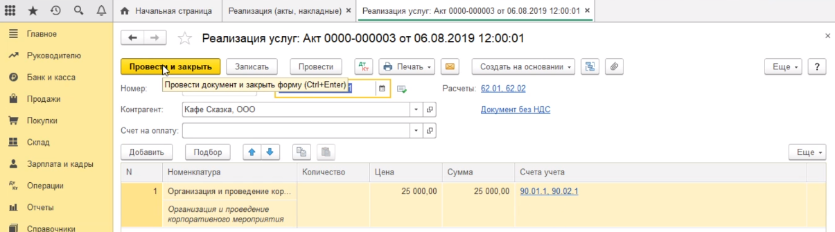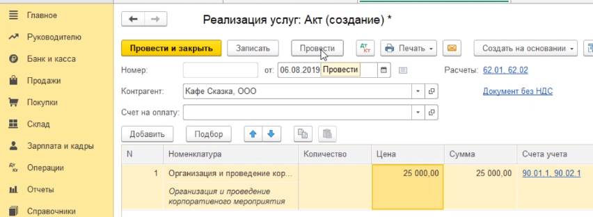 После создания акта, если вы с ним ничего больше не собираетесь делать, то вам достаточно нажать кнопку провести и закрыть.
