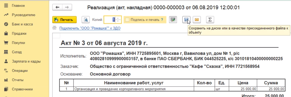 Либо можем сохранить в электронном виде, для этого существует кнопка сохранить на диск.