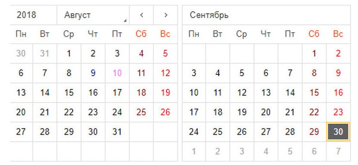 Для обеспечения комфортного пользования календарем используются различные цвета: