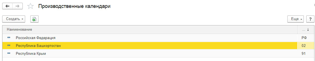 В программе изначально есть календарь с наименованием «Российская Федерация». Его необходимо настраивать один раз каждый календарный год.