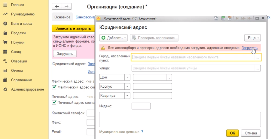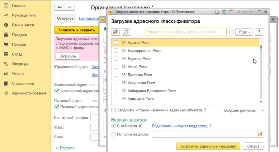 Перед этой процедурой необходимо загрузить адресный классификатор.