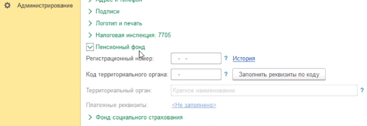 Пенсионный фонд и фонд социального страхования. Данные разделы нужны для того, чтобы у нас правильно заполнялась отчетность по кадровому учету и по зарплате.