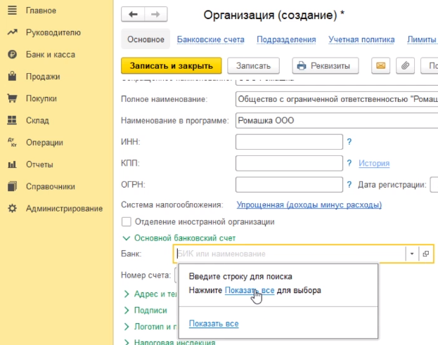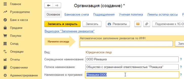 Как заполнить справочник об организации в 1С Бухгалтерия 8.3