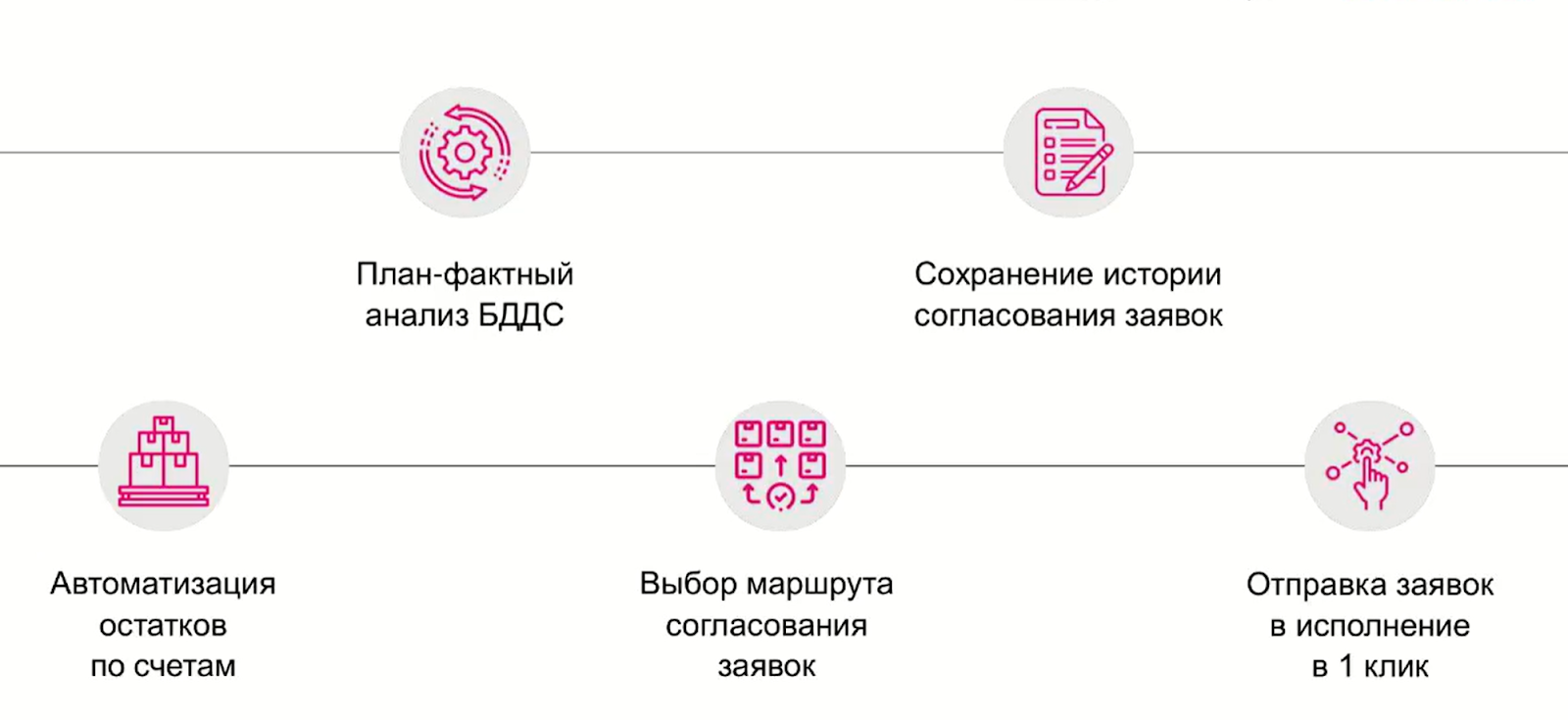 По мере роста бизнеса система позволяет масштабировать финансовое управление от уровня одной компании до уровня группы без смены методологии и подходов к казначейству. В рамках одной системы выстраивается связанная работа менеджеров, финансистов, казначеев и бухгалтерии, что позволяет быстрее принимать решения и эффективно управлять платежами при большом их объеме. Ниже рассмотрим ключевые возможности подсистемы более подробно.