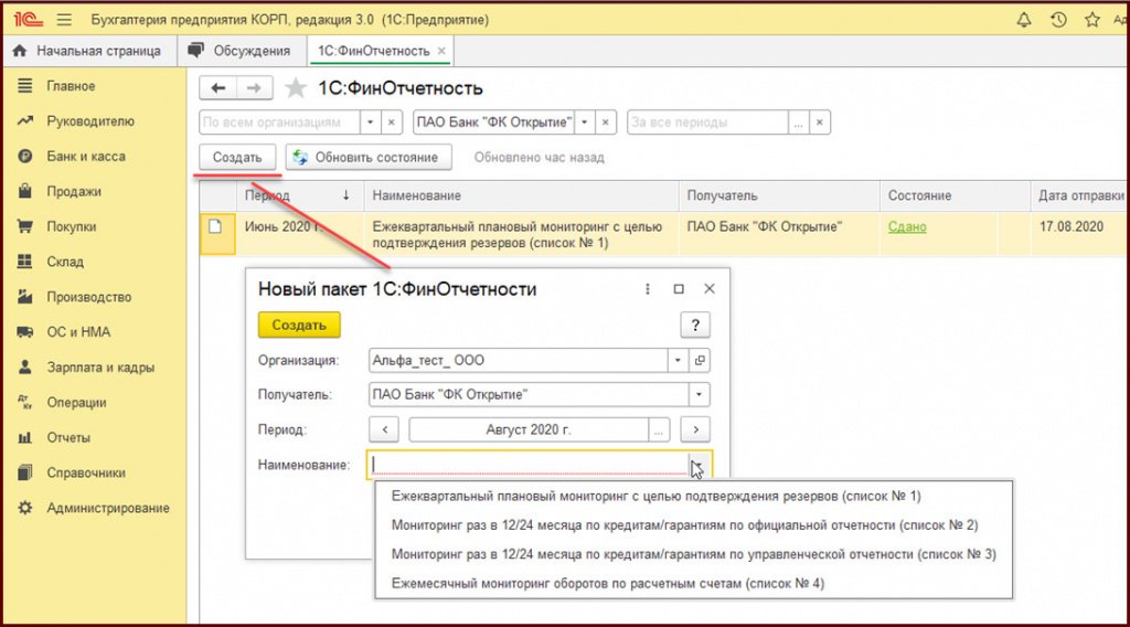Доступ к сервису 1С:ФинОтчетность и создание пакета отчетов