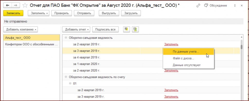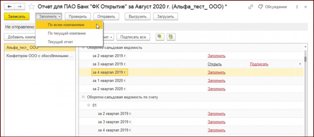 Если учет группы компаний осуществляется в отдельных базах, пакеты отчетности могут быть подготовлены и подписаны каждый в своей базе. Отчеты выгружают в zip-архивы и загружают в общий пакет в базе основной компании группы.