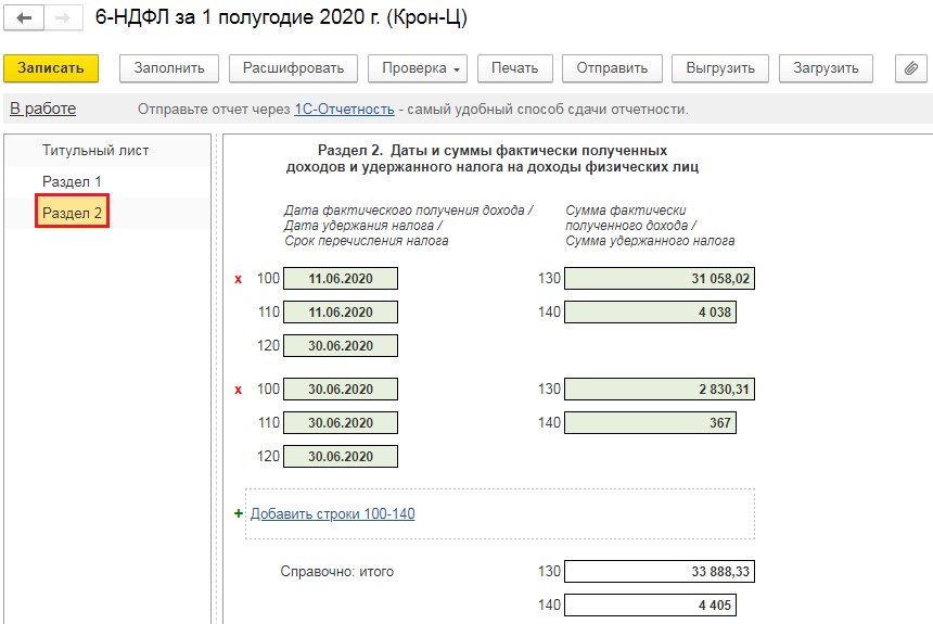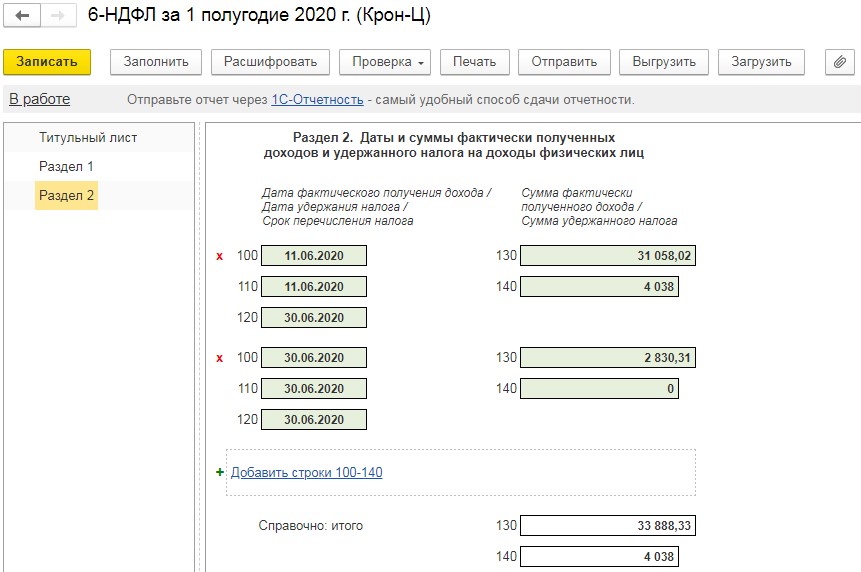 Рассмотрим, каким образом наши начисления отобразились в отчёте 6-НДФЛ за первую половину года.