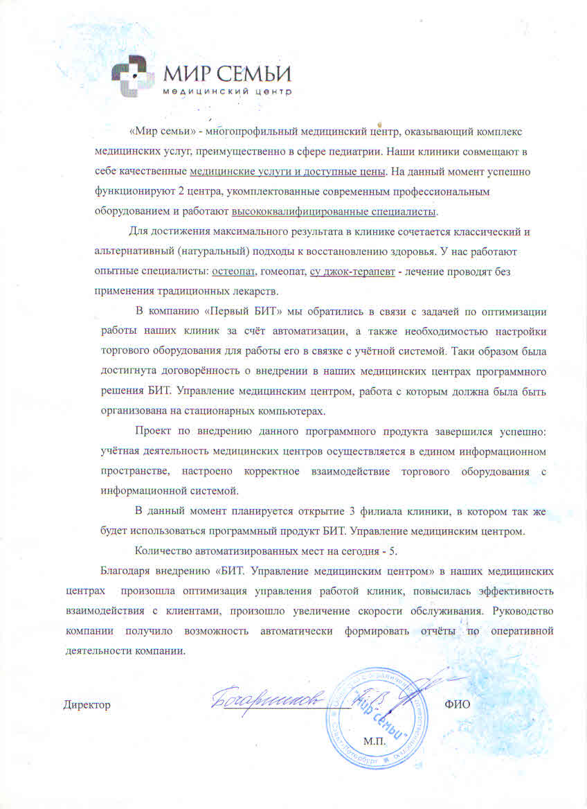 «Мир семьи» - многопрофильный медицинский центр, оказывающий комплекс услуг, преимущественно в сфере педиатрии. Наши клиники совмещают в себе качественные медицинские услуги и доступные цены. На данный момент успешно функционируют 2 центра, укомплектованные современным профессиональным оборудованием и работают высококвалифицированные специалисты.